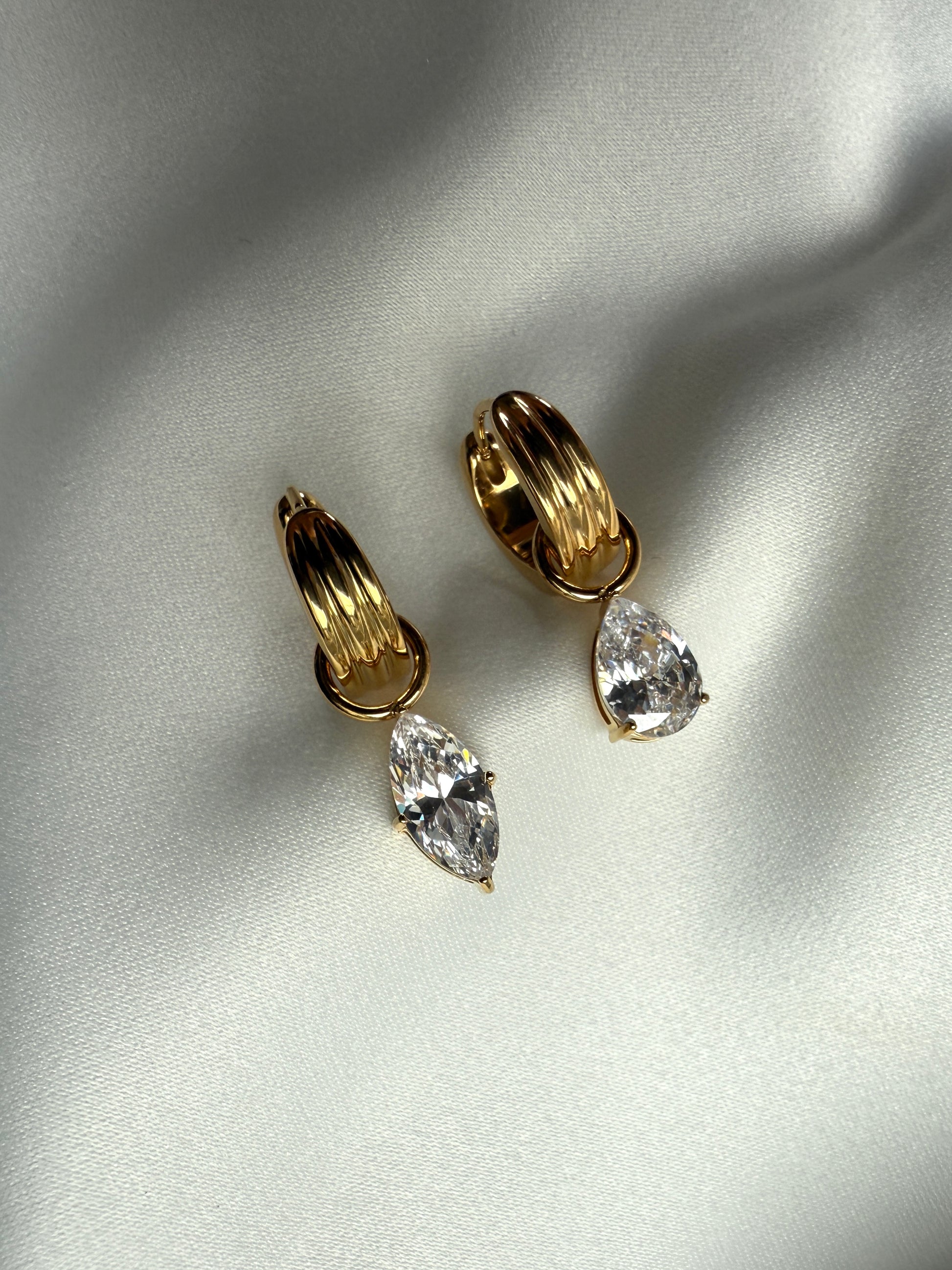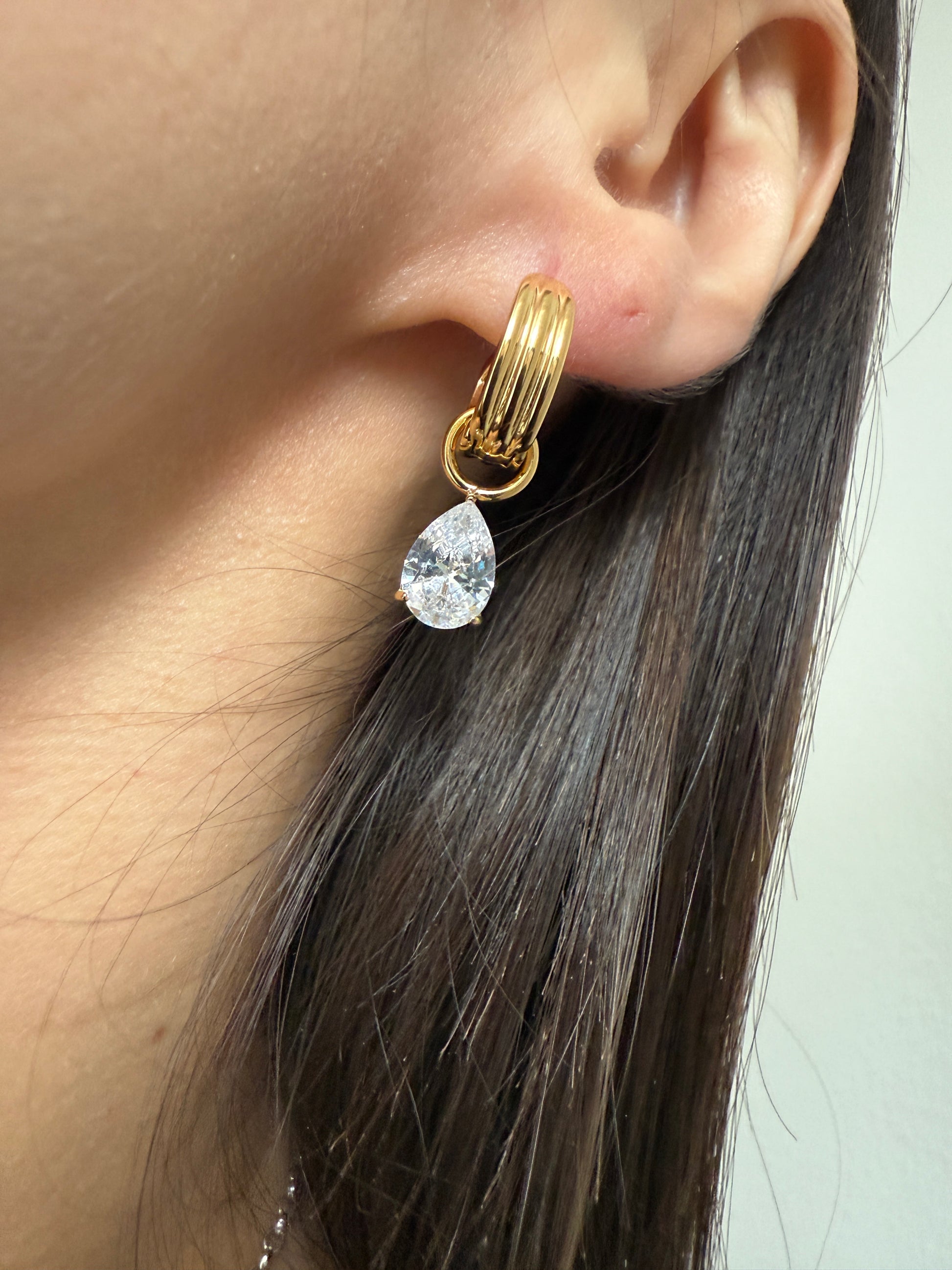 LUXUS 2-in-1 Creole – Robuste Gold-Ohrringe aus Edelstahl mit abnehmbarem Zirkonia-Tropfen, Hypoallergen & Wasserfest, Marquise Dangle